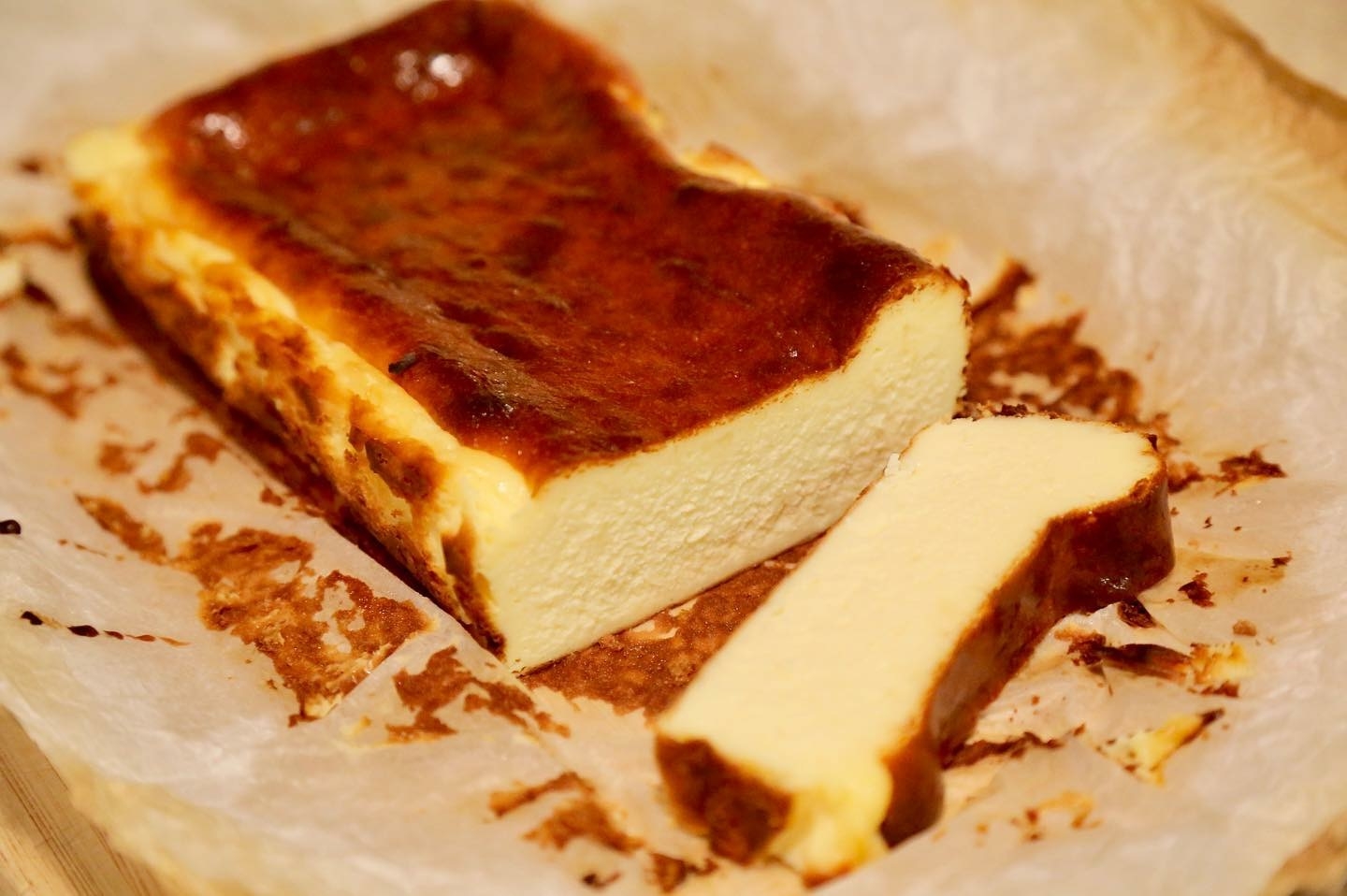 スペインのバスク地方 サンセバスティアンのひとつのバルから有名になった 黒い焦げ目がついた中が半熟とろとろのバスクチーズケーキのレシピ バスク チーズケーキの特徴は 無造作に型に詰められたオーブンペーパーに黒い焦げ目のついたケーキ と 焦げ ばかりに
